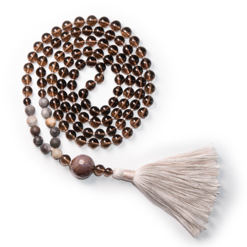 Smoky Quartz, Amazonite & Agate – Temple Mala Necklace